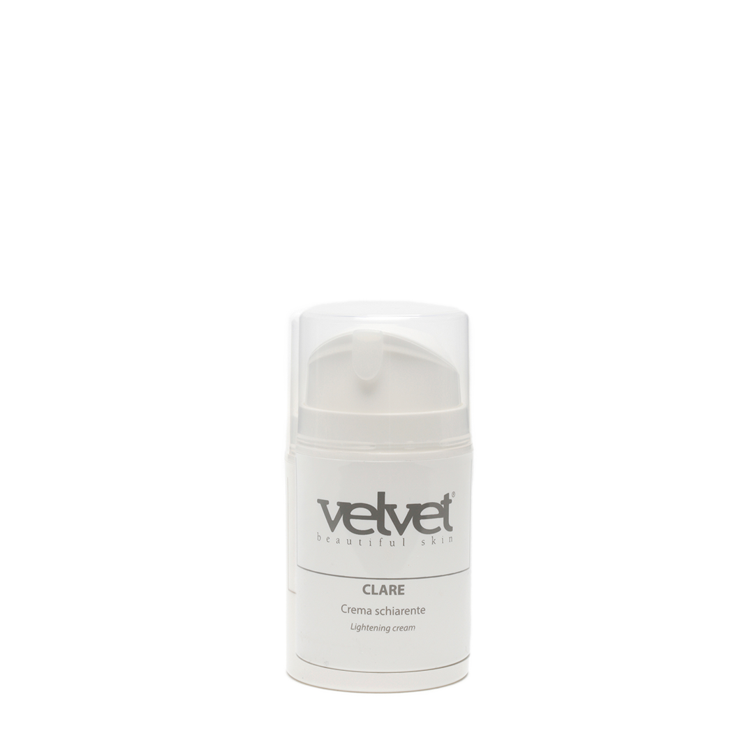 Lightening formulation specific for skin hyperpigmentations (spots), based on ingredients such as kojic acid and Chilean Boldo extract (which are able to inhibit the production of melanin) and alpha lipoic acid (which act by combating already existing spots). formed). The presence of Shea butter, vitamins A and E and olive oil also makes Clare a valid anti-aging product.