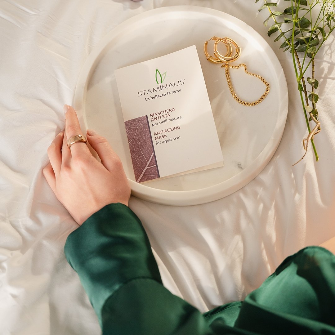 Le sostanze funzionali della Maschera Anti Age per pelli Mature sono state accuratamente selezionate per donare compattezza, luminosità e rigenerazione cutanea. Dalla texture ricca, corposa e setosa è eccellente per dare una sferzata di energia ed elasticità alle pelli senescenti. Grazie alla presenza di attivi preziosi come Sodium DNA, estratto di Cellule Staminali da Mela Uttwiler Spautlaber e Fosfolipidi, uniti ad olii e burri preziosi come Jojoba ed Argan, noteremo dalla prima applicazione una sorprendente fermezza, elasticità e un nutrimento intensivo. L’azione profondamente ristrutturante rallenta i segni dell’invecchiamento cutaneo donando al viso un aspetto immediatamente più giovane e disteso e rendendolo quindi indispensabile per la propria beauty routine settimanale come un vero e proprio elisir di bellezza e giovinezza.